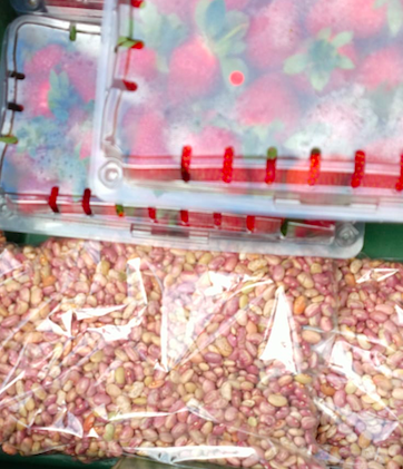 La foto del friol con las fresa y la de frijol a granel, fueron tomadas en la granja en septimebre de 2021.